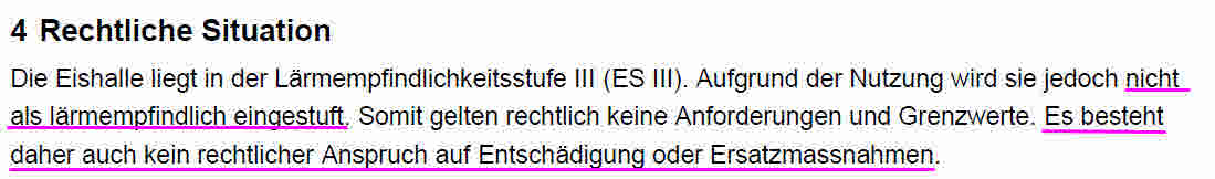 Interessant ist aber, dass das Lärmgutachten, das extra in Auftrag gegeben wurde, Folgendes zur rechtlichen Situation sagt (Seite 6):